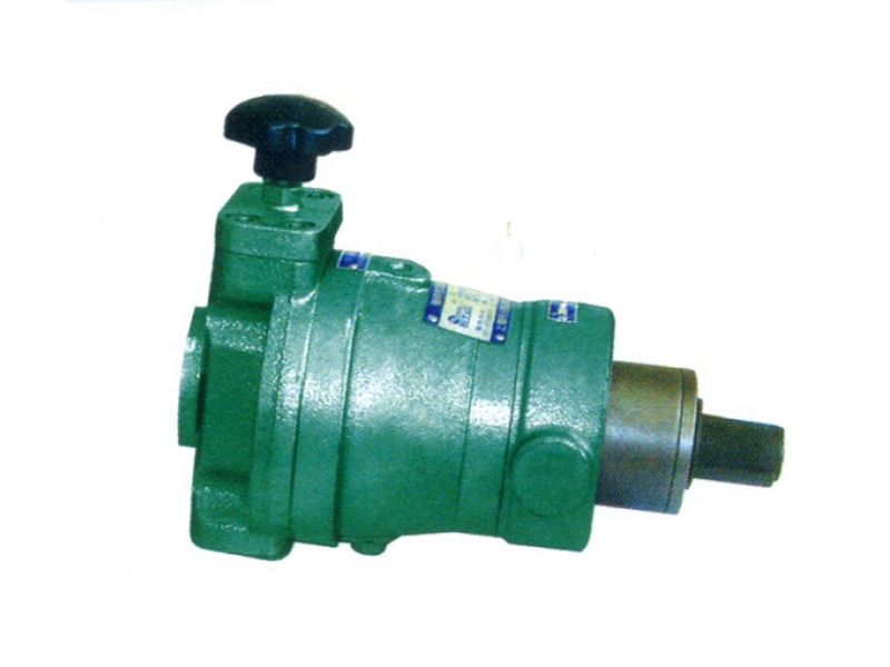 手動變量泵改變流量靠外力轉動調(diào)節(jié)手輪,旋轉調(diào)節(jié)螺杄,帶動變量活塞沿軸向移動,同時帶動變量頭繞中心轉動,改變傾斜角,達到變量目的。當達到所需流量時可使鎖緊螺母緊固。